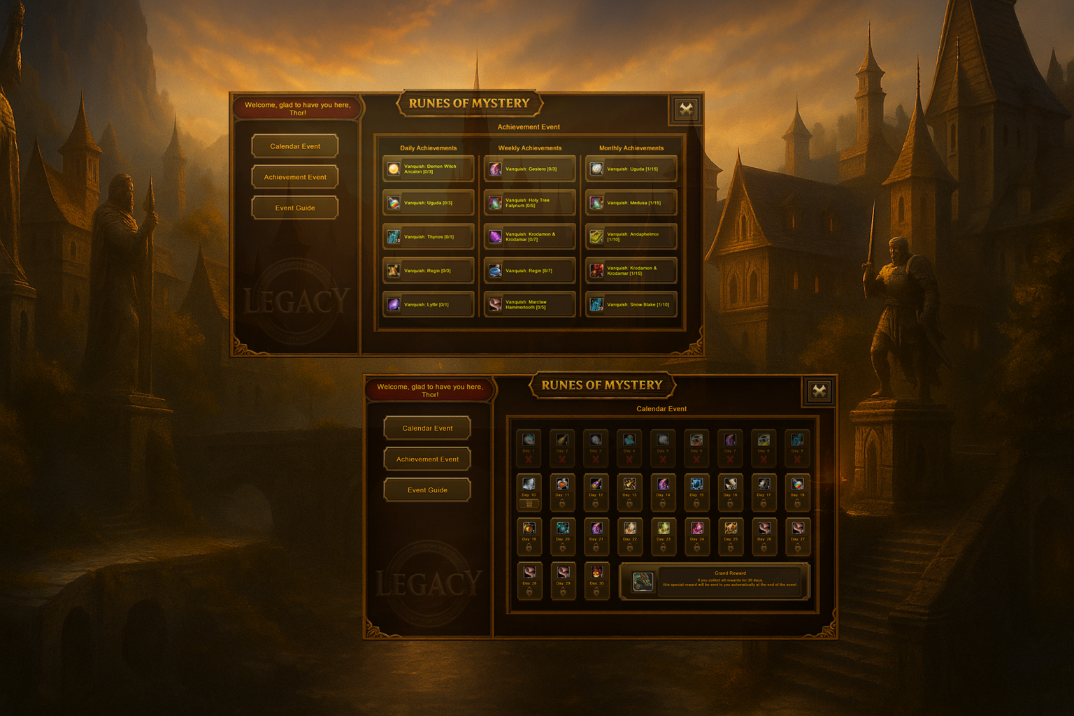 The Runes of Mystery Legacy team has developed a brand-new Event Extension!The system consists of two main sections: 📅 Calendar Event 🏆 Achievement Event Join now, claim your rewards, and become LEGENDARY! 💎🔥